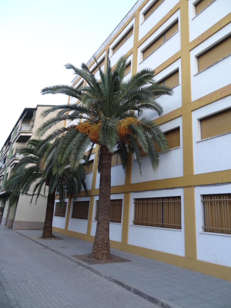 Le recomiendo que retire los racimos de dátiles con un serrucho de pértiga, evitando dañar las hojas, de esta forma evitará el problema que tiene en su fachada con la caída de los dátiles.